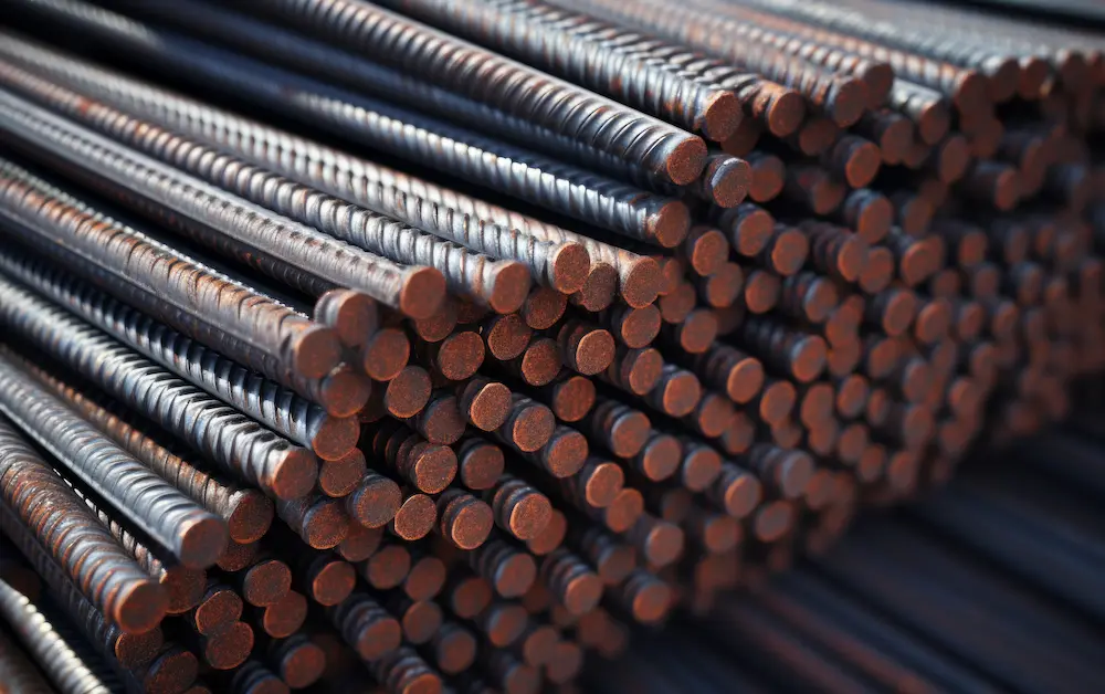 Reinforced steel bars used in construction for structural integrity and strength.